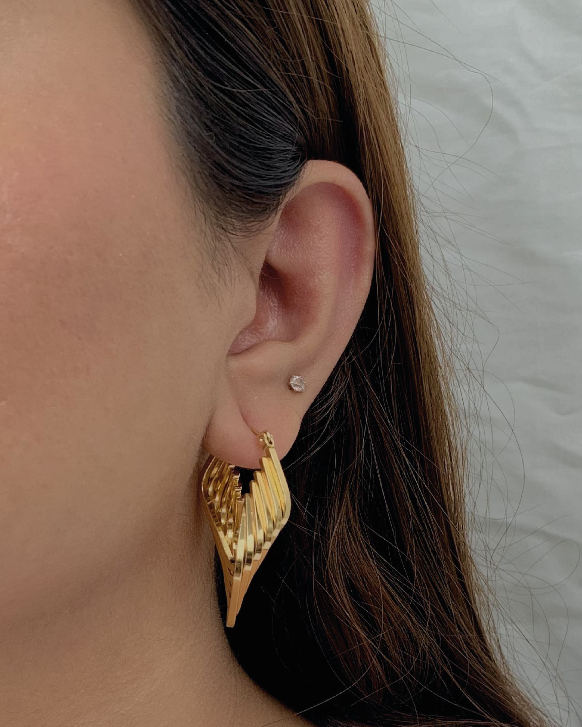 Designed to mesmerise, these earrings feature an innovative design that combines classic elegance with a touch of modern artistry. The intricate patterns and unique textures create a visual illusion, drawing the eye with their enchanting interplay of light and shadow.